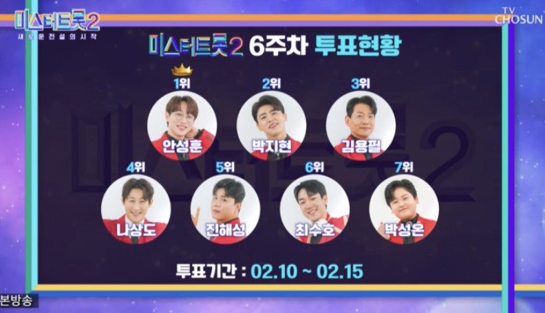 미스터트롯2 6주차 방송분 투표 결과